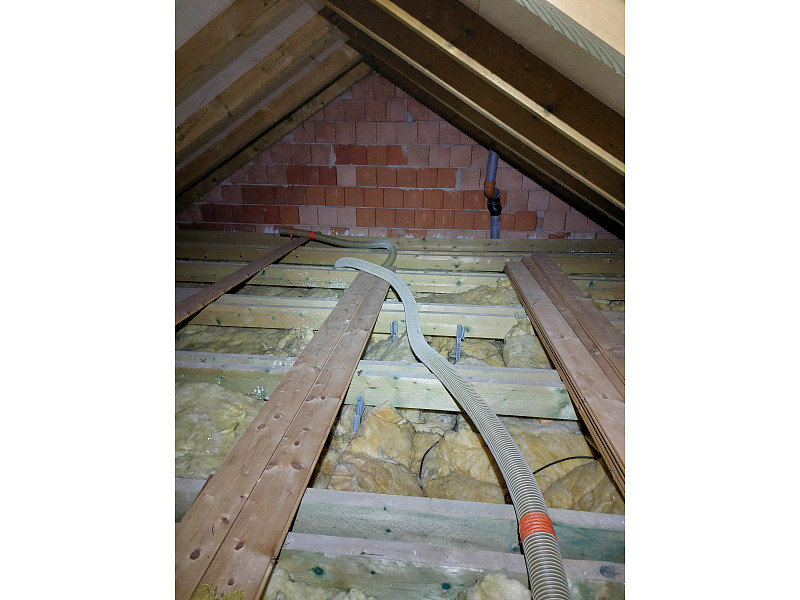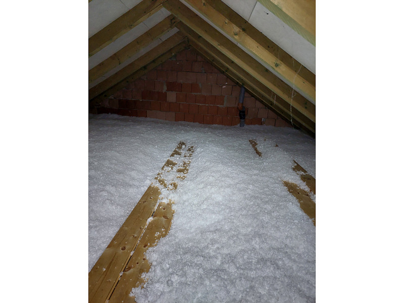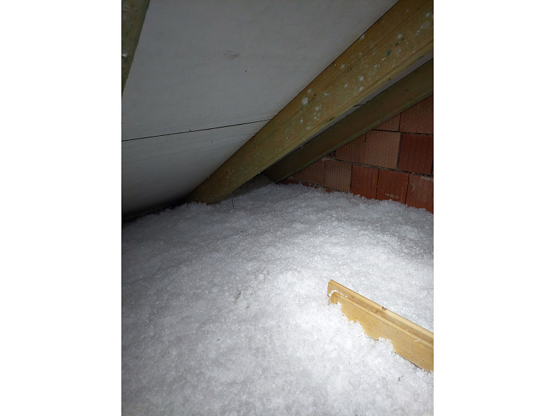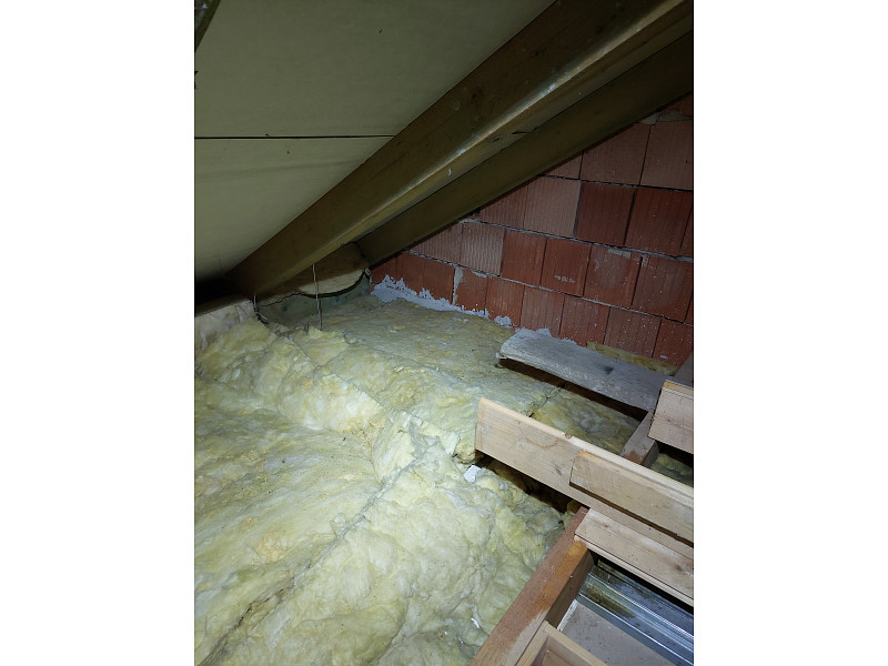 V druhé půli července 2025 zateplila Poctivá izolace strop stávajícího rodinného domu v Brně – Slatině. Rodinný dům se sedlovou střechou a s obytným podkrovím již měl na sádrokartonovém stropě pod kleštinami loženou rolovanou minerální vatu, ale nedostatečné vrstvy. Investor se proto rozhodl pro doplnění izolační vrstvy na stávající izolaci tak, aby byla izolována i dřevěná konstrukce stropu. Náš profi tým proškolených pracovníků tedy na stávající rolovanou vatu loženou na roštu sádrokartonového stropu nafoukal novou 20 cm vysokou izolační vrstvu. Na celkové ploše asi 50 m2tak vznikla nová plně funkční izolační vrstva bez jakýchkoliv tepelných mostů, která zajistí dokonalý tepelný komfortv domě po celý rok. Jako materiál pro doplnění izolační vrstvy byla zvolena minerální nehořlavá a lehká izolace Ursa Pure Floc.
