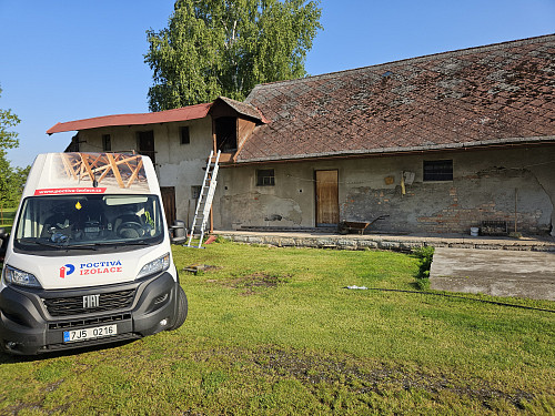 Ke konci května 2025 zateplila Poctivá izolace strop staršího rodinného domu z poloviny 20. století v Dymokurech. Dům byl z části pro obývání a s půdní vestavbou a z části stávající plocha půdy pro hospodářskou činnost. Rodinný dům disponoval sedlovou střechou s krytinou z šablon na latích. Na trámovém stropě byla pochozí betonová krusta. Jakmile jsme odklidili slámu z této půdní plochy nad obytnou částí, oddělenou lemem z OSB, vystavěli revizní lávku, na celkovou plochu asi 110 m2 nafoukal náš profi tým proškolených pracovníků 30 cm vysokou izolační vrstvu. Jako materiál byla zvolena skelná minerální izolace Supafil loft PRO od společnosti Knauf. Vznikla tak nová plně funkční izolační vrstva bez jakýchkoliv tepelných mostů, která zajistí dokonalý tepelný komfort v domě po celý rok.