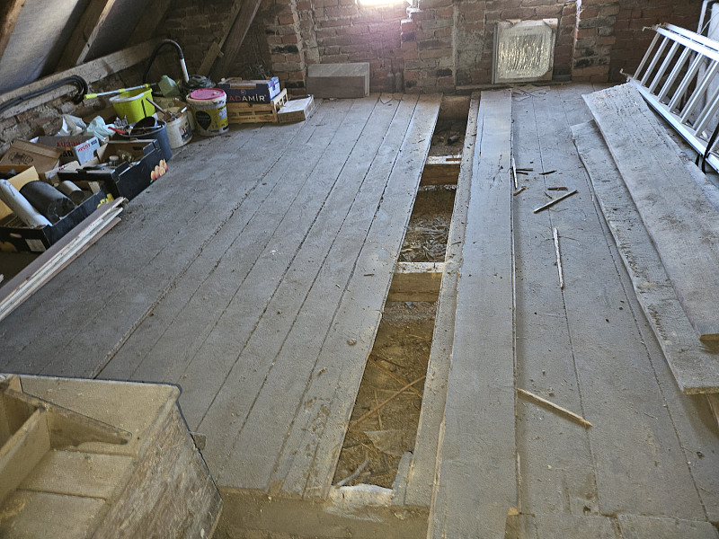 V polovině srpna 2025 zateplila Poctivá izolace strop stávajícího rodinného domu v Hrbově. Rodinný dům disponoval sedlovou střechou s krytinou z tašek, u hřebene odvětrávaných. Podlaha půdy byla z části trámová s prkenným záklopem, kde bylo možno tuto dutinu izolovat, a část plochy byla s betonovou mazaninou, kde jsme vystavěli revizní lávku a následně nafoukali izolaci v souvislé vrstvě 30 cm. Na celkovou plochu asi 90 m2 byla jako materiál zvolena skelná minerální izolace Ursa Pure Floc, kterou náš profi tým proškolených pracovníků nafoukal na strop po přípravě plochy půdy. Vznikla tak nová plně funkční izolační vrstva bez jakýchkoliv tepelných mostů, která zajistí dokonalý tepelný komfort v domě po celý rok.