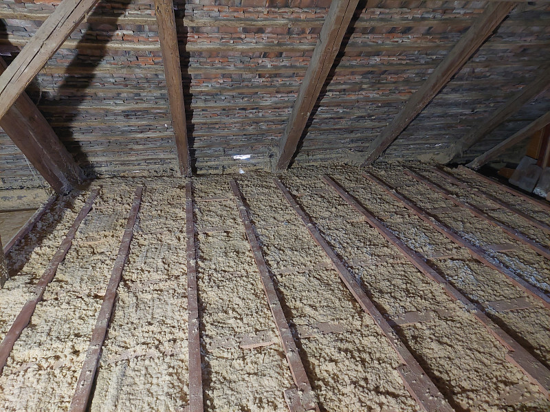 V dubnu 2025 zateplila Poctivá izolace strop stávajícího rodinného domu z prostoru půdy v Jenišovicích na Chrudimsku. Dům se sedlovou střechou a půdou bývalé zemědělské usedlosti měl podlahu půdy částečně s klenbovím a částečně s hurdiskami. Aby mohla být půda nadále využívána, bylo potřeba vystavět na podlahu před samotným izolováním dřevěný rošt a skrze statiku na klenboví použít trámky pro spojení s pozednicovými trámy. Jakmile byla dřevěná konstrukce položena, nafoukal náš profi tým proškolených pracovníků na celou plochu půdy cca 78 m2dřevovláknitou izolaci ve vrstvě 30 cm. Následně pomocí latí vytvořil mezi izolací a následným záklopem z OSB egger desek větranou mezeru. Jako materiál byla zvolena přírodní ekologická dřevovláknitá izolace Steico zell od společnosti Steico. Vznikla tak nová plně funkční izolační vrstva bez jakýchkoliv tepelných mostů, která zajistí dokonalý tepelný komfort v domě po celý rok.