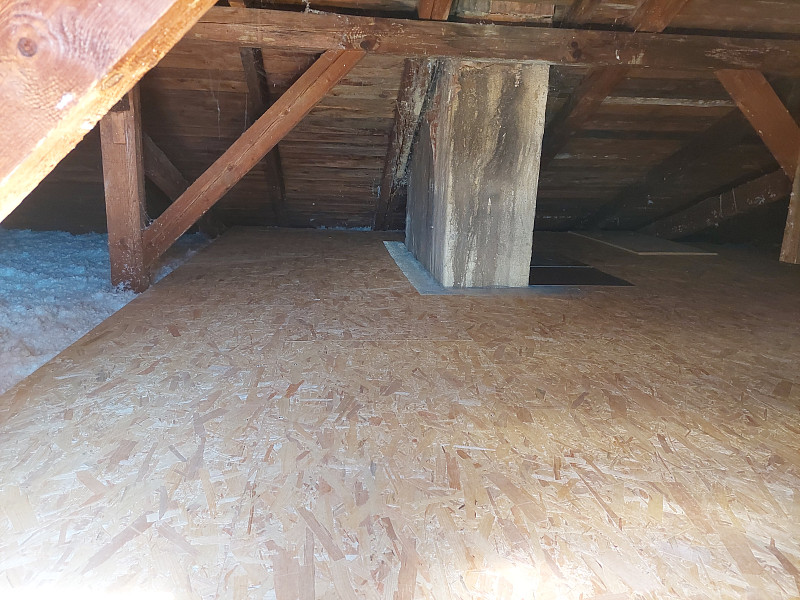 V září 2025 zateplila Poctivá izolace strop stávajícího rodinného domu v Jihlavě. Starší dům z první poloviny 20. století disponoval valbovou střechou s původní krytinou na celoplošném prkenném bednění. Na trámovém stropě s prkenným záklopem, násypem a půdovkami se nejprve rozvinula geo-textílie, jelikož nerovnost celé plochy dosahovala až 20 cm a při stavění roštu s vypodložením pro udržení roviny by hrozilo protržení parotěsné fólie položené pod roštem. Jakmile se podařilo postavit dřevěný rošt do roviny, nafoukala se na celou asi 115 m2 velkou plochu půdy 30 cm vysoká vrstva izolace. Následně náš profi tým proškolených pracovníků zaklopil plochu OSB deskami s větranou mezerou pomocí latí a u stropního výlezu vytvořil nové schodiště. Jako materiál byla zvolena skelná minerální izolace Ursa Pure Floc od společnosti Ursa. Vznikla tak nová plně funkční izolační vrstva bez jakýchkoliv tepelných mostů, která zajistí dokonalý tepelný komfort v domě po celý rok.