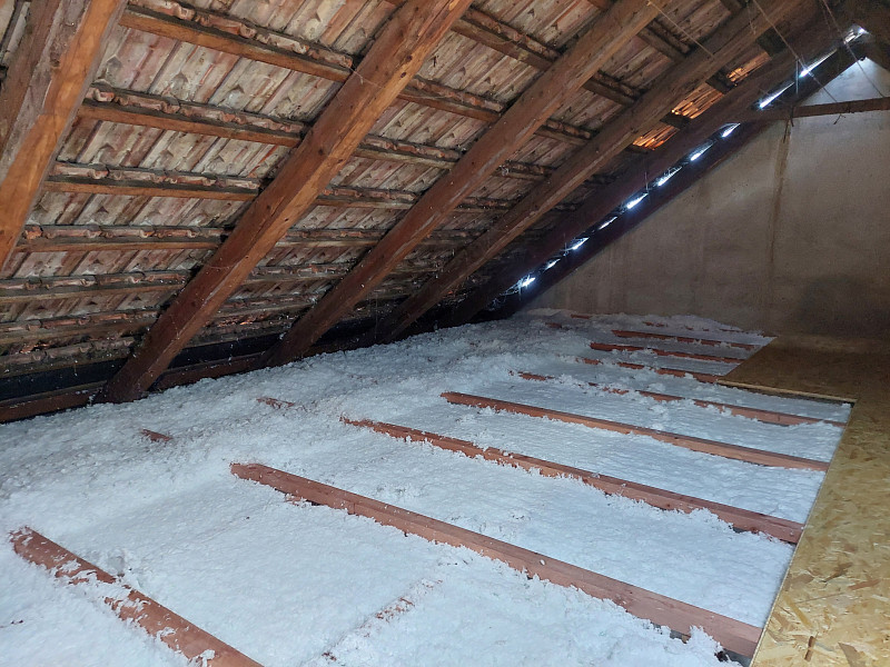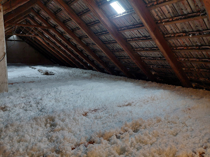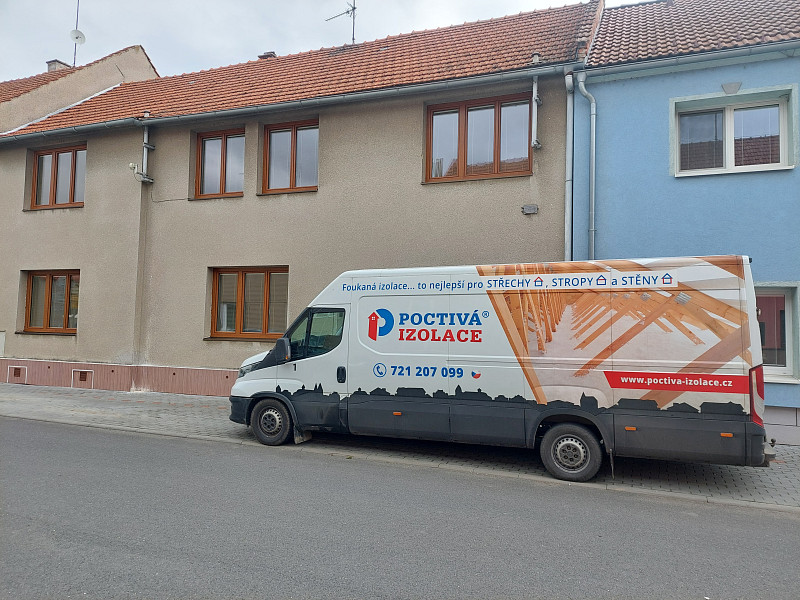 Ke konci března 2025 zateplila Poctivá izolace stávající patrový rodinný dům v Určicích. Rodinný dům se sedlovou střechou s krytinou z tašek, kde na trámovém stropě byla betonová krusta, se investorka rozhodla zateplit. Nejdříve byla možnost foukání do trámové dutiny. Po sondě, kdy v trámové dutině byla nedostatečná výška, se rozhodla pro zateplení na stávající podlahu půdy tak, aby byl půdní prostor nadále využíván. Jelikož pod betonovou krustou již byla vložená folie, na betonovou podlahu jsme tedy rovnou mohli stavět dřevěný rošt bez použití parotěsné fólie. Jamile byl rošt pomocí špalků a latí vystavěn a kolem stropního výlezu zvýšen rám, nafoukal na celou plochu půdy cca 90 m2 náš profi tým proškolených pracovníků minerální tepelnou izolaci ve vrstvě vysoké 30 cm. Jako materiál byla zvolena skelná minerální izolace Supafil loft PRO od společnosti Knauf. Vznikla tak nová plně funkční izolační vrstva bez jakýchkoliv tepelných mostů, která zajistí dokonalý tepelný komfort v domě po celý rok, s využitím půdního prostoru ke svému účelu.