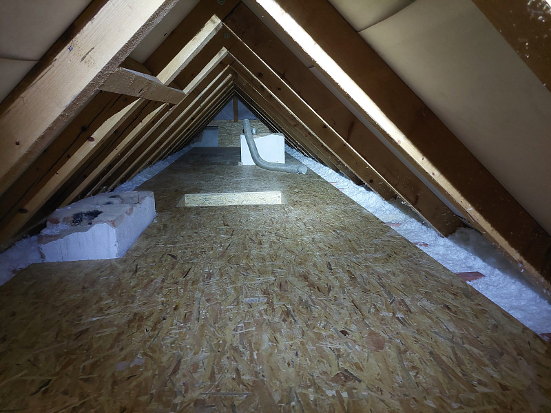 Na samém konci roku 2024 zateplila Poctivá izolace stávající rodinný dům v Náměšti nad Oslavou. Patrový rodinný dům disponoval polovalbovou střechou s krytinou z betonových tašek. Na sádrokartonovém stropě mezi kleštinami a v šikminách mezi krokvemi byla stávající minerální vata s nedostatečnou vrstvou 20 cm. Investorka se v rámci energetických úspor domu rozhodla pro zvýšení vrstvy izolace a i když jsou veškeré komíny domu ubourány, tak i pro vystavění pochozí plochy půdičky nad kleštinami pro možnou budoucí kontrolu podstřešního prostoru. Nejdříve se zvýšil rám stropního výlezu, následně se pomocí úhelníků a latí postavila dřevěná konstrukce roštu, do kterého náš profi tým proškolených pracovníků nafoukal tepelnou izolaci ve vrstvě vysoké 15 cm nad kleštiny. Pomocí latí vytvořili větranou mezeru mezi izolací a následným záklopem z OSB desek a šikminy doizoloval s přefoukáním vazného trámu. Na celkovou plochu asi 50 m2 bylo tedy třeba zhotovit novou a souvislou vrstvu izolace. Jako materiál byla zvolena skelná minerální izolace Supafil loft PRO od společnosti Knauf. Vznikla tak nová plně funkční izolační vrstva bez jakýchkoliv tepelných mostů, která zajistí dokonalý tepelný komfort v domě po celý rok.