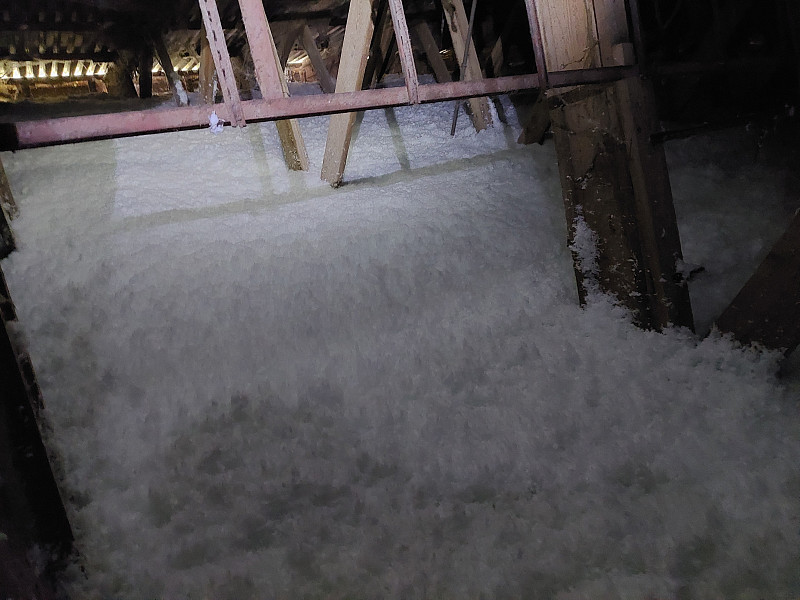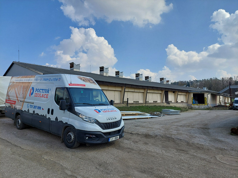V březnu 2025 zateplila Poctivá izolace stávající zemědělskou halu pro chov prasat ve Vlčkovicích na Trutnovsku. Dlouhá hala se sedlovou střechou a krytinou z trapézového plechu disponovala dřevěným vazníkovým krovem. Pro odvětrání střechy jsme namontovali do střešní krytiny ventilační hlavice. V podstřešní části byla vedena elektroinstalace, proto jako materiál byla zvolena nehořlavá skelná minerální izolace Supafil loft PRO od společnosti Knauf, kterou náš profi tým proškolených pracovníků nafoukal mezi vazníky ve vrstvě vysoké 25 cm. Vznikla tak nová plně funkční izolační vrstva bez jakýchkoliv tepelných mostů, která zajistí dokonalý tepelný komfort v domě po celý rok.