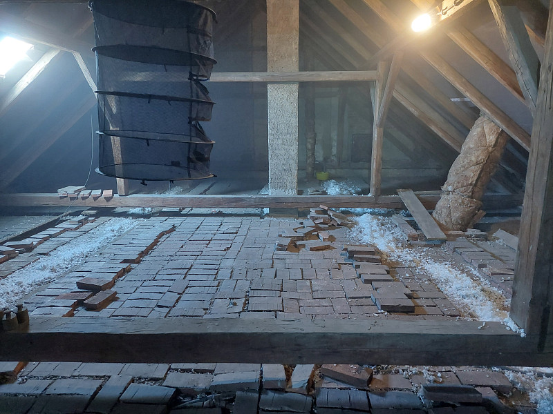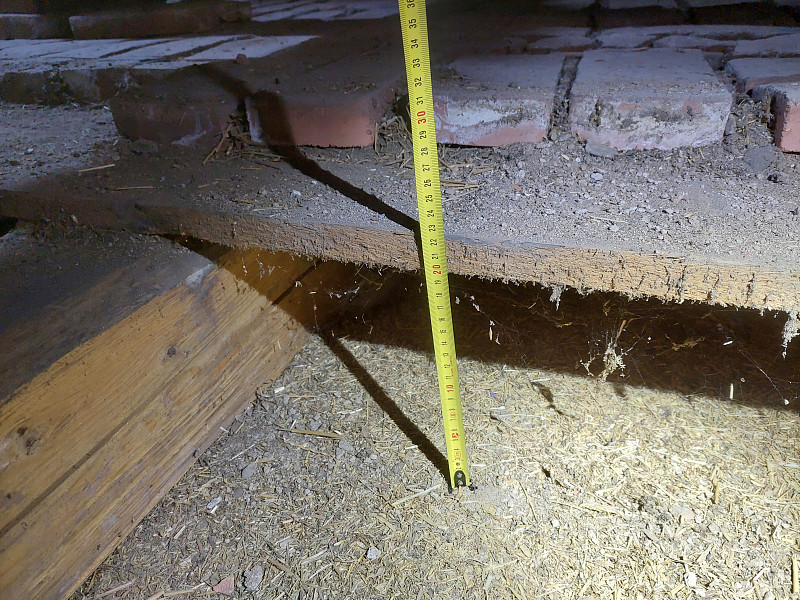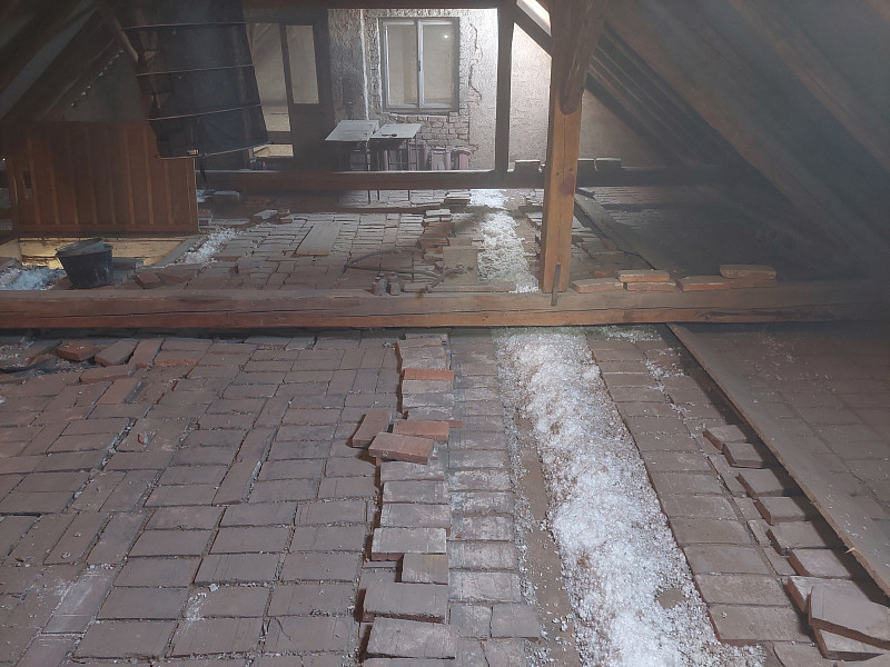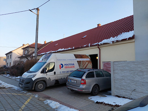 V druhé půli února 2025 zateplila Poctivá izolace stávající rodinný dům v Ostrovačicích. Rodinný dům disponoval sedlovou střechou s novou střešní krytinou z tašek a střešní fólií. V trámovém stropě s prkennou podlahou se zásypem a půdovkami, zespoda s původní rákosovou omítkou, byla 20 cm vysoká dutina. Investor si připravil montážní otvory dle pokynů technika, abychom mohli do trámové dutiny nahutnit minerální izolaci. Na celkovou plochu asi 140 m2 bylo tedy třeba zhotovit novou vrstvu izolace. Jako materiál byla zvolena skelná minerální izolace Ursa Pure Floc od společnosti Ursa, kterou náš profi tým proškolených pracovníků nafoukal do dutiny trámového stropu ve vrstvě vysoké 20 cm. Vznikla tak nová plně funkční izolační vrstva, která zajistí dokonalý tepelný komfort v domě po celý rok.