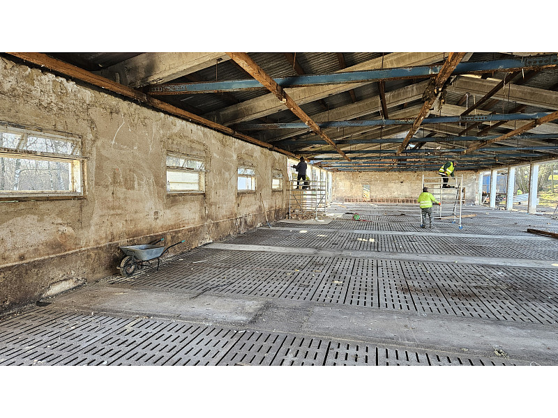 Kromě aplikace foukané izolace se firma Poctivá izolace věnuje výstavbě a rekonstrukcím zemědělských a průmyslových hal. Právě jedna taková rekonstrukce nás čekala na farmě Vyskytná, jenž se zabývá chovem prasat. Jednalo se o poměrně rozsáhlou halu a opravy zde byly takřka kompletní. Nejprve bylo nutné demontovat stávající podhled haly, stejně tak i střechu. Po zabezpečení vodovodní a elektrické přípojky jsme odstranily stávající rošty. Před demolicí vysoké, vícepatrové přípravny bylo nutné demontovat její opláštění a střechu. Následně byla přípravna zdemolována. V hale jsme zhotovili nové betonové zídky, novou střechu a opláštění PIR panely. Z PIR panelů byl tvořený rovněž i podhled. Osadili jsme nové výplně otvorů a veškeré klempířské prvky. Zdemolovali jsme vnitřní stěny a zbudovali nové příčky středové chodby. Na závěr došlo k obložení stěn a výmalbě.
