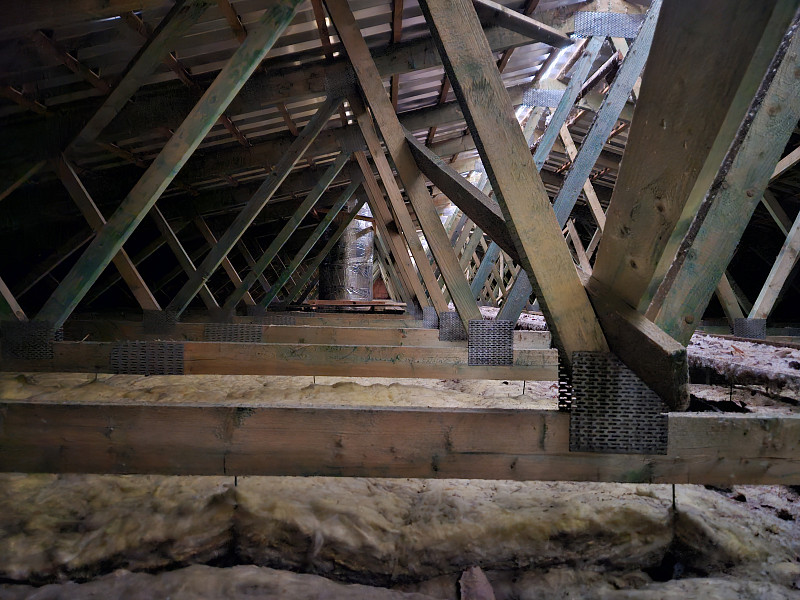 Nejprve bylo nutné demontovat stávající podhled a vynosit jej ven do připravených kontejnerů. Stejně tak i stávající starou a nedostatečnou tepelnou izolaci. Součástí demontáže podhledu byla i demontáž stávajícího osvětlení. Samotný nový podhled pak byl tvořený trapézovým hliníkovým plechem v bílé barvě. Dále byly oplechovány ventilační komíny a osazeny veškeré klempířské prvky. Podhled z trapézových plechů byl následně zateplen pomocí minerální foukané izolace.