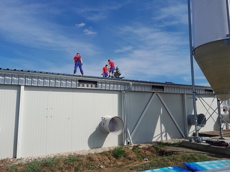 Farma Rohatec se zabývá chovem drůbeže a momentálně prochází rekonstrukcí. Firma Poctivá izolace přispěla svojí prací k rekonstrukci prostřednictvím výměny střešní krytiny na dvou halách této farmy. Stávající krytina byla vyměněna za novou z trapézového plechu. Trapézovým plechem menší tloušťky pak byly oplechovány i štíty a římsy pod římsy pod střechou. Pod větrací klapky byl nainstalován stínící hliníkový plech. Součástí dodávky a montáže střešní krytiny byly samozřejmě veškeré další klempířské prvky jako například hřebenáče a závětrné lišty. Dále byl na obou střechách zhotovený kompletní okapový systém.
