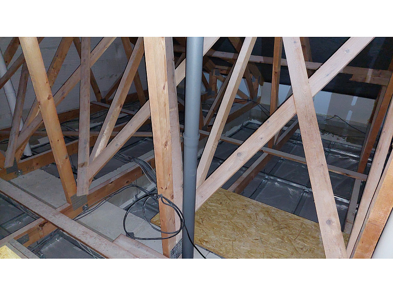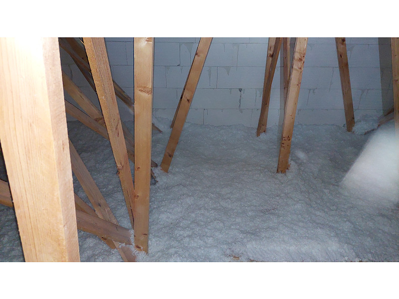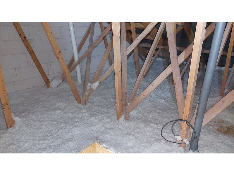 V září 2022 zrealizovala Poctivá izolace zateplení stropu novostavby rodinného domu s vazníkovou konstrukcí, sádrokartonovým podhledem a dvojitým rastrem v Olbramovicích. Středem půdního prostoru vedla podlaha, která byla následně investorem zvednuta 5 cm nad izolaci. Náš profi tým proškolených pracovníku zde na strop novostavby nafoukal na celkovou plochu 141 m2 vrstvu materiálu Supafil loft ve vrstvě vysoké 40 cm. Zatepleno bylo během jediného dne. Poptejte si zateplení stropu od Poctivé izolace i Vy. Jde o důležitou investici, která se vyplatí. Návratnost v podobě úspor na energiích činí pouhé 2-3 roky!