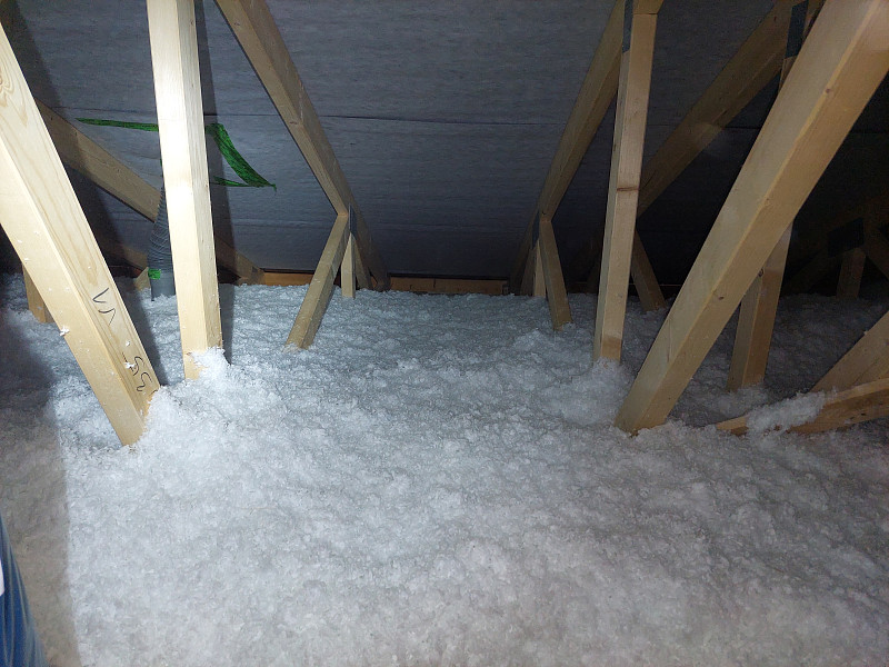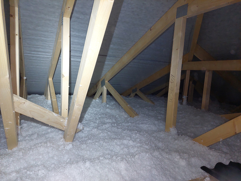 Na konci srpna 2022 zrealizovala Poctivá izolace zateplení stropu novostavby dřevostavby typu bungalov s konstrukcí krovu tvořenou příhradovým vazníkem a se sádrokartonovým stropem. U bungalovů s tímto typem konstrukce je důležité použít lehký materiál, který stropy nebude zbytečně přetěžovat. Ideálním materiálem je v takovém případě skelná minerální izolace Supafil loft od společnosti Knauf, kterou náš špičkový tým pracovníků nafoukal na celkovou plochu 92,7 m2 v bleskové rychlosti. Strop novostavby rodinného domu v Litvínovicích zateplila Poctivá izolace v rámci služby zateplení subdodavatelsky.
