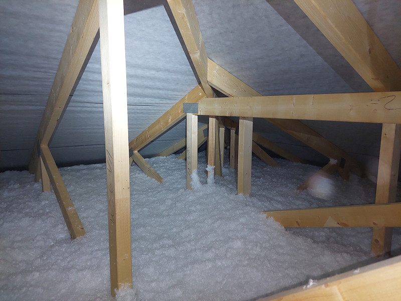 Na strop novostavby dřevostavby typu bungalov nafoukal náš profi tým proškolených pracovníků materiál Supafil loft od společnosti Knauf ve vrstvě vysoké 32 cm. Jednalo se o konstrukci pro bungalovy typickou, tedy vazníková konstrukce s lehkým SDK stropem. V takovém případě je použití materiálu Supafil loft skvělou volbou. Jedná se o izolaci s nízkou objemovou hmotností, která ani ve vyšších vrstvách strop nijak nepřetíží. Supafil loft je zároveň nehořlavý, nesléhává, je prodyšný a také ekologický! Zateplení stropu dřevostavby rodinného domu v Litvínovicích zrealizovala Poctivá izolace v rámci služby zateplení subdodavatelsky. Jedná se o skvělou spolupráci nejen se stavebními firmami, ale i s menšími staviteli dřevostaveb a dalšími řemeslníky. Pracovníci Poctivé izolace jednoduše přijedou, nafoukají, uklidí po sobě a během chvilky je hotovo. Naši partneři tak ušetří nejen čas, ale i peníze a pracovní sílu. Jedná se o oboustranně výhodnou spolupráci. Staňte se naším partnerem i Vy.