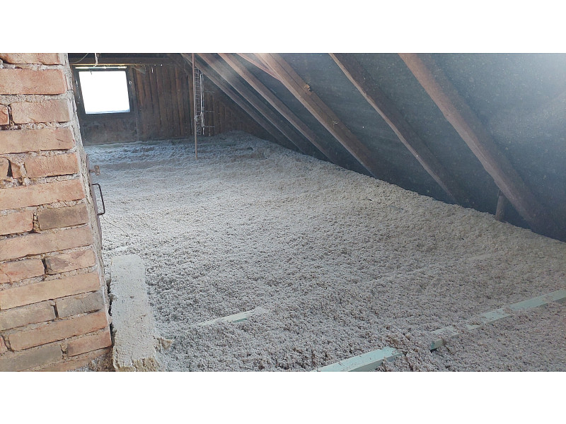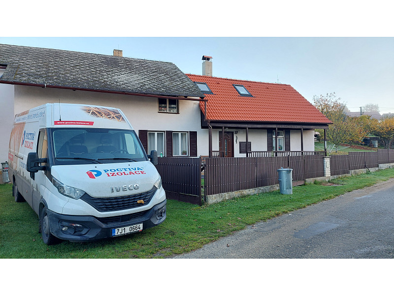 Ke konci října 2022 zrealizovala Poctivá izolace zateplení stropu stávajícího rodinného domu se sedlovou střechou v Čejticích. Jednalo se o chalupu s trámovým stropem. Nad trámy se nacházel prkenný záklop a částečně popraskaný nesourodý beton. Úkolem týmu pracovníků Poctivé izolace bylo nejen vytvořit dokonalou tepelně-izolační vrstvu, ale rovněž zhotovit podpůrný rošt z dlouhých hranolů. Jako materiál byla v tomto případě zvolena celulózová neboli papírová izolace, která byla nafoukána v aplikační vrstvě 28 cm.