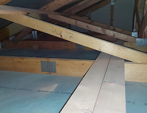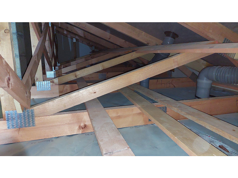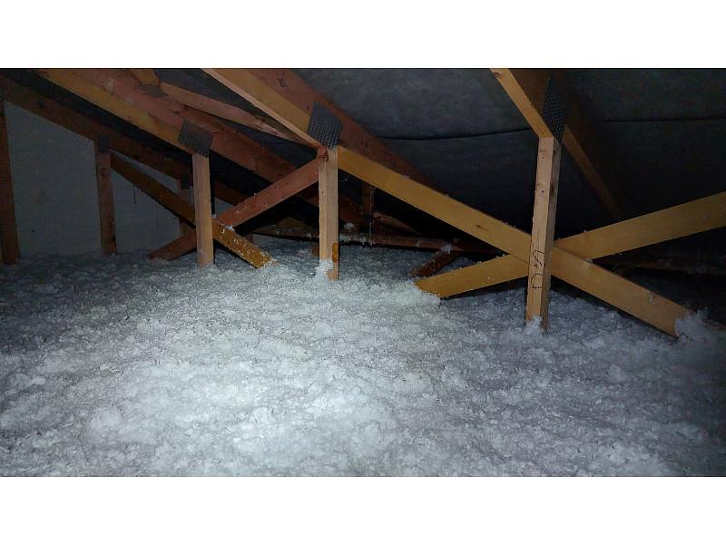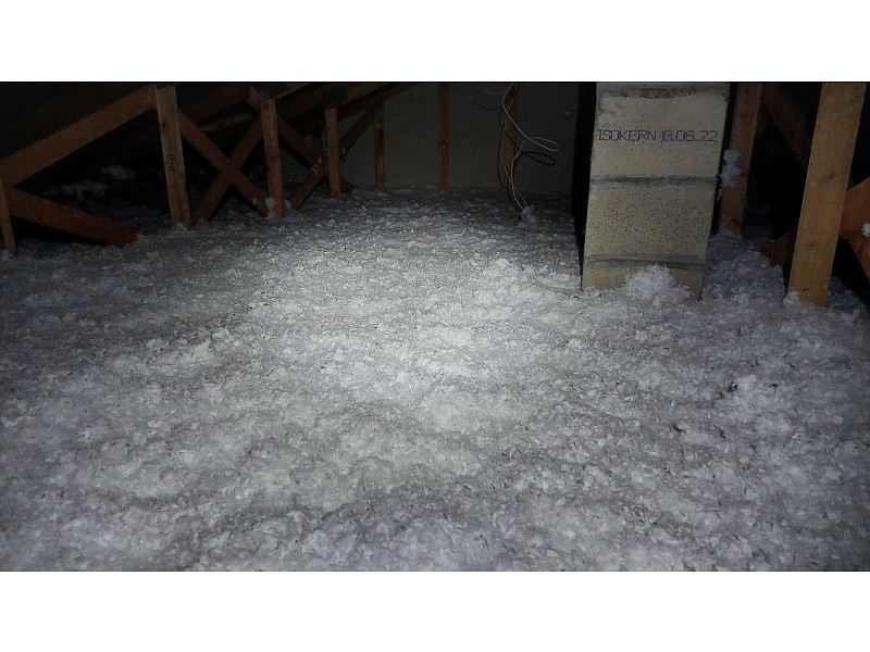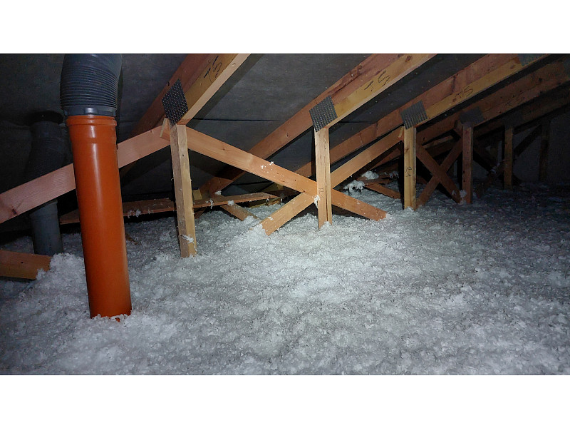 V říjnu 2022 provedla Poctivá izolace zateplení stropu novostavby dřevostavby rodinného domu v Travčicích. Jednalo se rodinný dům typu bungalov s vazníkovou konstrukcí krovu a sádrokartonovými stropy. Použití technologie foukané izolace bylo v tomto případě ideálním řešením. Tým pracovníků Poctivé izolace nafoukal na parotěs jištěný rastrem vrstvu skelné minerální izolace Supafil loft vysokou 28 cm. I v tak spletité konstrukci, jako je vazníková střešní konstrukce, si foukaná vata hravě poradí. Na stropě domu tak během chvilky vznikla celistvá dokonale izolující vrstva tepelné izolace bez jakýchkoliv tepelných mostů. Poptejte si zateplení stropu od Poctivé izolace a šetřete na energiích i Vy.