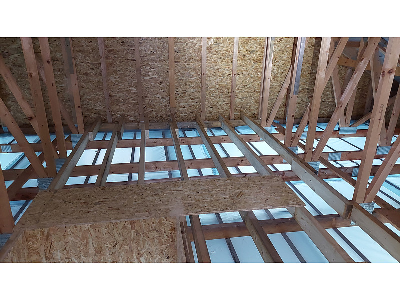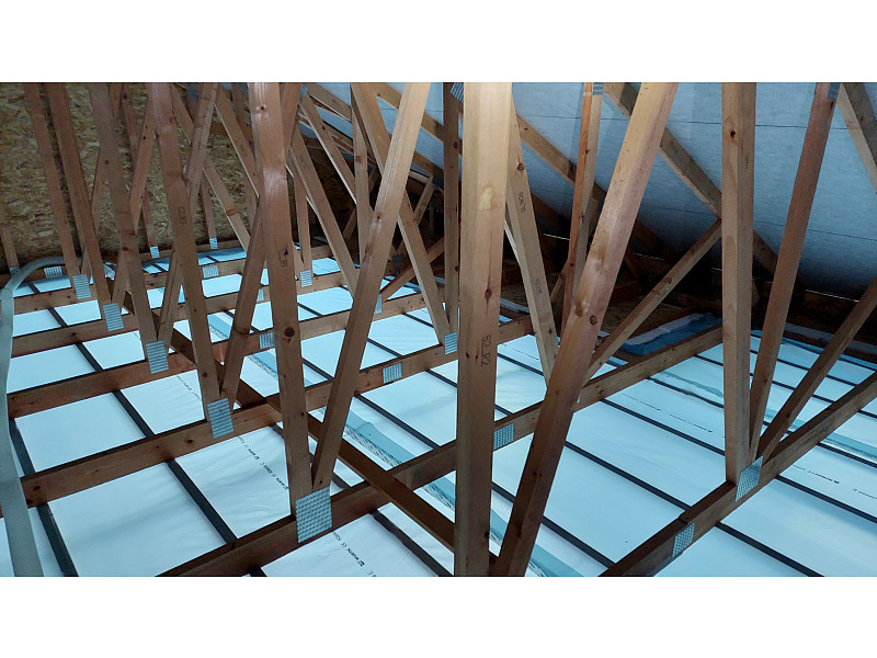 V září 2022 zrealizovala Poctivá izolace zateplení stropu novostavby rodinného domu ve Vraždových Lhoticích. Konstrukce krovu byla tvořena příhradovým vazníkem. Náš profi tým proškolených pracovníků foukal izolační materiál na parotěsnou fólii. Na celkovou plochu 160 m2 se nafoukala izolační vrstva vysoká 30 cm. Jako materiál byl použit Supafil loft od společnosti Knauf. Zatepleno bylo během chvilky.