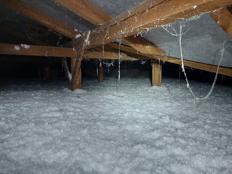 Tým pracovníků Poctivé izolace dostal za úkol provést zateplení půdního prostoru nad sedlovou střechou objektu občanské vybavenosti v Dolních Hořicích. Jednalo se o klasickou trámovou vazbu a pevný pochozí strop, na který naši proškolení pracovníci aplikovali vrstvu materiálu Supafil loft. Supafil je minerální skelná izolace, která nesléhává, je prodyšná a řadí se do třídy reakce na oheň A1, a je tedy prakticky nehořlavá. Poctivá izolace má ve své nabídce celkem 5 druhů izolačních materiálů. Krom minerálních skelných izolací jako je Supafil jsou to ještě minerální čedičové izolace, celulózové neboli papírové izolace, dřevovláknité a polystyrénové izolace. Každý materiál ma trochu jiné vlastnosti a hodí se do jiných typů konstrukcí. S výběrem té pravé foukané izolace Vám v Poctivé izolaci rádi poradíme a pomůžeme.