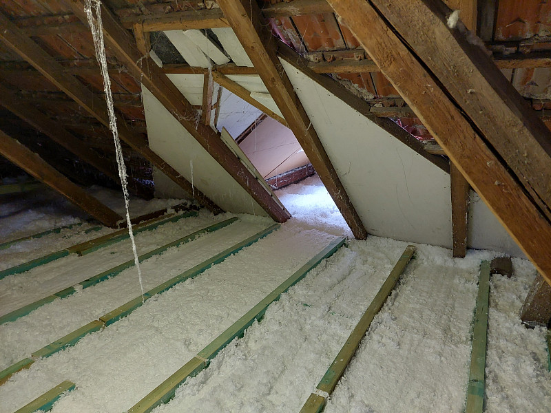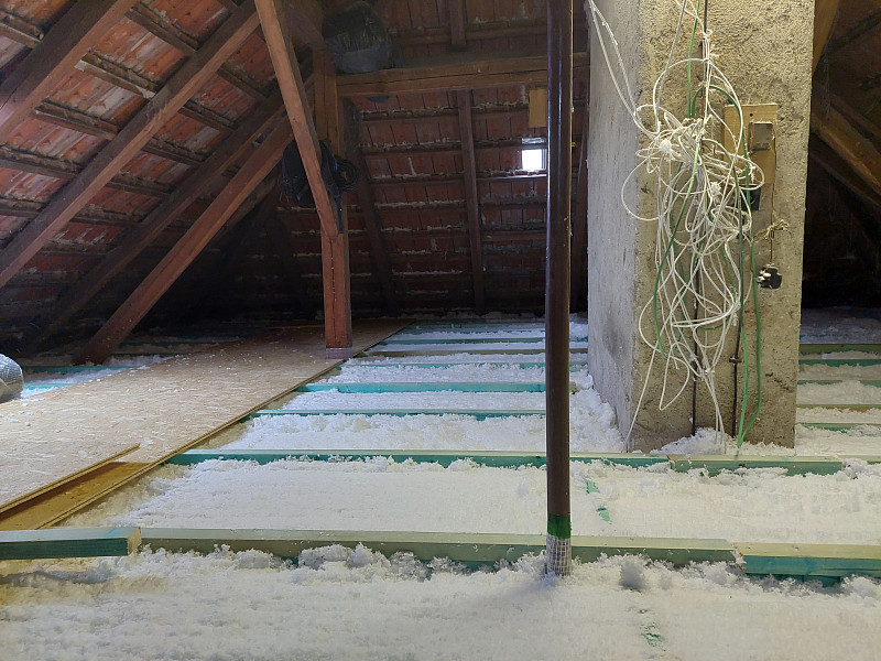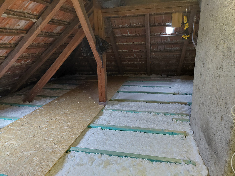 V listopadu 2022 zrealizovala Poctivá izolace zateplení stropu stávajícího rodinného domu v Náměšti nad Oslavou. Konkrétně se jednalo o rodinný dům s valbovou střechou s jedním štítem, trámovou vazbou a trámovým stropem. Krom zhotovení zateplení bylo úkolem pracovníků Poctivé izolace vytvořit na stropě podlahový systém. Poctivá izolace má svůj vlastní patentovaný distanční podlahový systém neboli DPS. Jako materiál pro zateplení byla použita skelná minerální vata Supafil loft, kterou náš tým pracovníků nafoukal ve vrstvě vysoké 30 cm.
