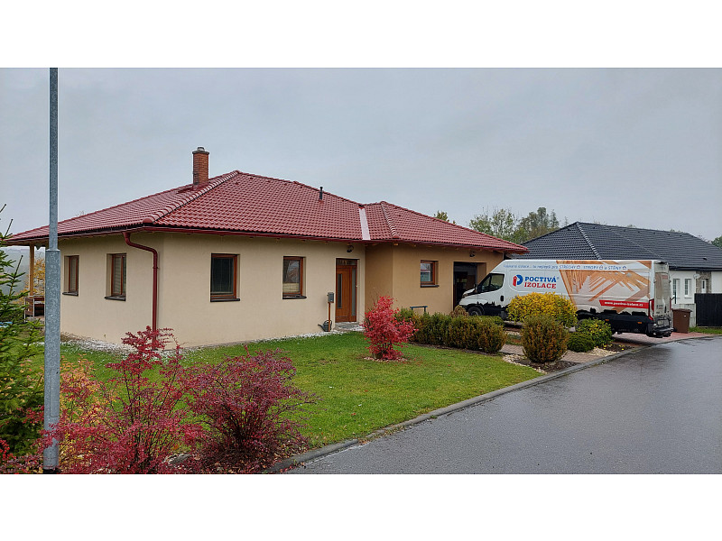 V říjnu 2022 zateplovala Poctivá izolace strop rodinného domu se sedlovou střechou v Puklicích. Po vyhoření se dělal na rodinném domu typu bungalov nový krov s trámovou konstrukcí. Na lehké sádrokartonové stropy nafoukal náš profi tým proškolených pracovníků materiál Supafil loft od společnosti Knauf. Minerální skelná izolace Supafil se foukala ve dvou různě vysokých vrstvách. Na straně obývacího pokoje ve výšce 35 cm a na straně u vchodu 27 cm. Zateplení proběhlo v bleskové rychlosti a na stropě domu vznikla celistvá dokonale izolující vrstva tepelné izolace. Poctivá izolace působí po celé České republice. Poptejte si nás i Vy.