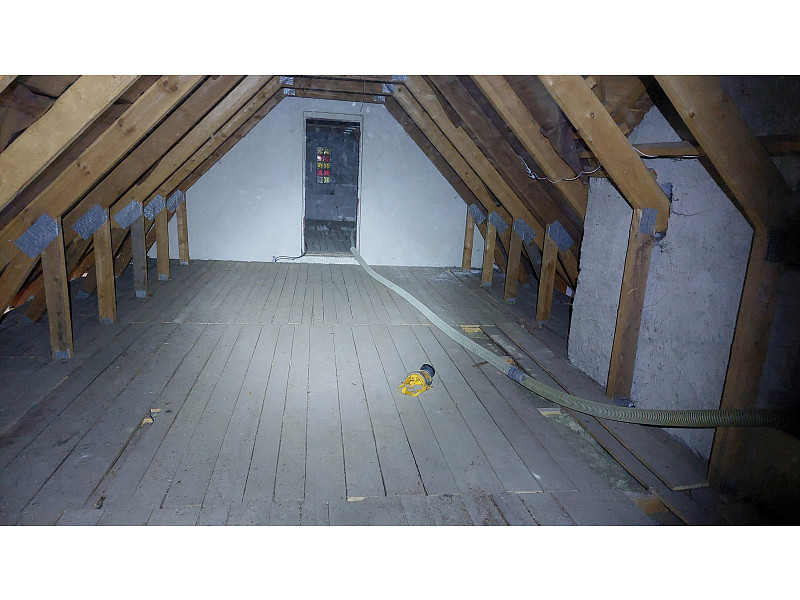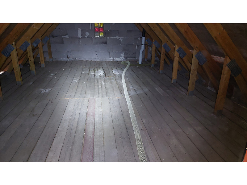 Na sádrokartonovém stropě stávajícího rodinného domu v Troubkách se již nacházela nerovnoměrná vrstva vaty. Před aplikací nové vrstvy bylo třeba zkontrolovat, zda není mezi původní vatou a záklopem mezera. Aby se vrstvy zcelily, bylo nejdříve nutné vyfoukat obvod, a to pod prkna do plna tak, aby se navázalo na stávající vrstvu izolace. Dalším krokem už bylo zafoukání volné plochy horního záklopu včetně věnce až do podbití. Cílem bylo dokonalé spojení obou vrstev a zamezení jakýchkoliv tepelných mostů. Jako materiál byla použita foukaná izolace Supafil loft, tedy minerální skelná izolace, která je velmi prodyšná, nesléhává a řadí se do třídy reakce na oheň A1, a je tedy prakticky nehořlavá. Spolu se stávající vrstvou izolační vaty vzniklo dokonalé zateplení stropu. Poptejte si zateplení od Poctivé izolace i Vy. Pracujeme rychle, efektivně a hlavně poctivě. Vyzkoušejte si nás.