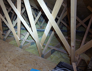 Pro bungalovy je vazníková konstrukce krovu s kombinací lehkých sádrokartonových stropů typická. Pokládka klasických izolačních rolích či desek by byla v takto spletitém prostoru jen velice obtížná a časově náročné. Díky technologii foukané izolace to může být hračka. Foukaná vata se pomocí foukacích strojů dostane na celou plochu stropu a dokonale obalí každý vazník. Vznikne tak celistvá kompaktní vrstva tepelné izolace bez jakýchkoliv tepelných mostů, skrz které by mohlo drahocenné teplo unikat ven. Majitelé domu tak ušetří za energie nemalé peníze. Zateplení stropu pomocí foukané izolace je důležitou investicí, která se vyplatí. Cenu zateplení Vám navíc mohou pomoci pokrýt dotace v rámci dotačního programu Nová zelená úsporám Light. Sádrokartonový strop rodinného domu v Lípě jsme zafoukali skelnou minerální izolace Supafil loft, která se na lehké stropy skvěle hodí zejména díky své nízké objemové hmotnosti. Supafil je navíc nehořlavý, nesléhává a je prodyšný a ekologický!
