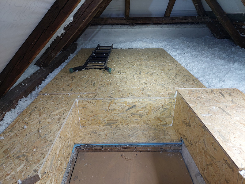 Pro zateplení podlahy půdy nebo chcete-li zateplení stropu, jedná se u stejnou část domu, Poctivá izolace navrhla majiteli domu foukanou izolaci ze skelného panenského vlákna o celkové výšce 30 cm. Poctivá izolace má v nabídce pro své zákazníky dva druhy skelných izolací z panenského vlákna. Je tedy z čeho vybírat. Mimo těchto dvou druhů izolací Poctivá izolace fouká i další druhy izolačních materiálů. Minerální čedičové, celulózové někdy také nazývané papírové a polystyrénové. Pro rodinné domy, tak jako v případě tohoto domu v Bzenci, jsou velmi vhodné právě skelné izolační materiály z panenského vlákna. Jsou velmi lehké absolutně zdravotně nezávadné. Neobsahují žádné chemické přísady v podobě barviv, lepidel nebo jiných pojiv. Jestliže podlaha půdy po zateplení má být celoplošně nebo částečně pochozí umí Poctivá izolace nabídnout řešení v podobě podlahového systému, který si Poctivá izolace pro své klienty vyrábí. Podlahový systém umožňuje postavit novou pochozí podlahu po celé ploše půdy nebo jenom na části půdy a zároveň umožňuje aplikovat foukanou izolaci bez jakýchkoliv tepelných ztrát. Výška podlahy se vyrábí vždy na míru každému klientovi a dle požadované vrstvy tepelné izolace. Jak stavbu podlahy, tak foukanou izolaci provádíme současně stejnými pracovníky. Proto zateplení stropu s výstavbou podlahy je rychlé, efektivní a s dlouhou zárukou.
