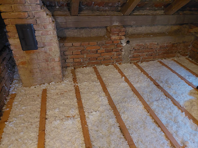 Díky této akci je půda zbavená mnoha zbytečností, jen bude třeba vše zbývající urovnat. Velmi hezky vypadá podlaha z desek a věřím, že izolace zateplí byt na zimu.
