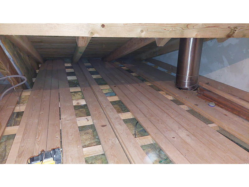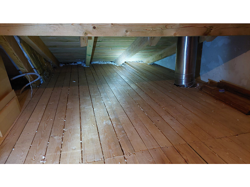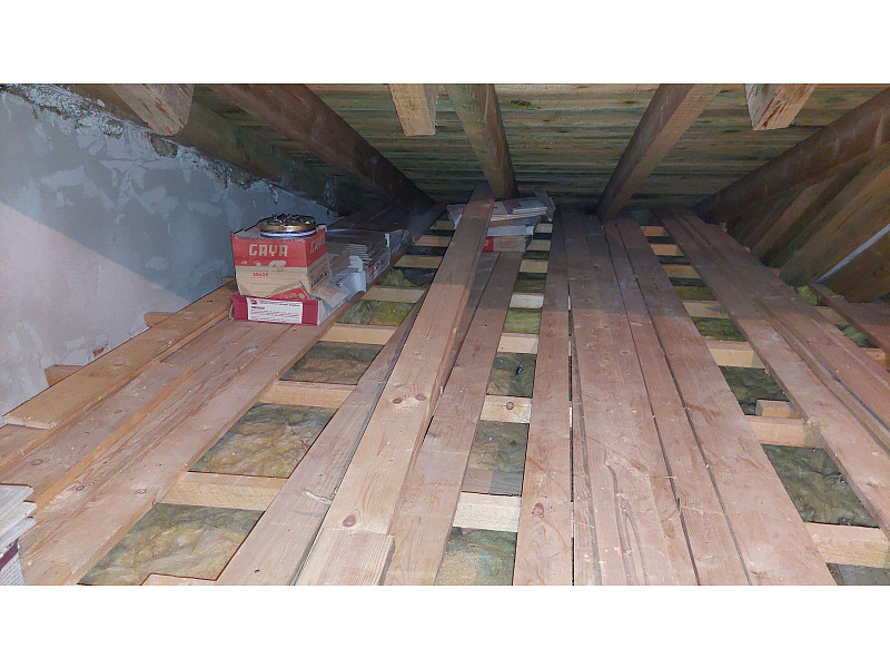V říjnu 2022 zateplila Poctivá izolace strop stávajícího rodinného domu v Roztokách. Rodinný dům disponoval trámovým stropem, jehož skladbu tvořila omítka, rákos a prkna, která byla souběžně s trámy. V dutině pod prkenným záklopem se již nacházela stávající vrstva vaty vysoká asi 20 cm, která již nevyhovovala dnešním standardům. Celá dutina měla výšku přibližně 40 cm a úkolem Poctivé izolace tak bylo zafoukat ji do plna. Jako materiál byla zvolena minerální skelná izolace Supafil loft od společnosti Knauf.